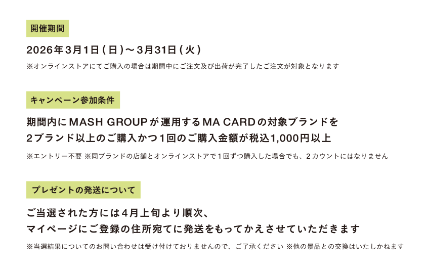 - ・開催期間中であれば、別の日にご購入いただいてもキャンペーンの対象となります